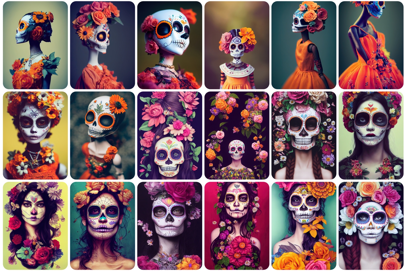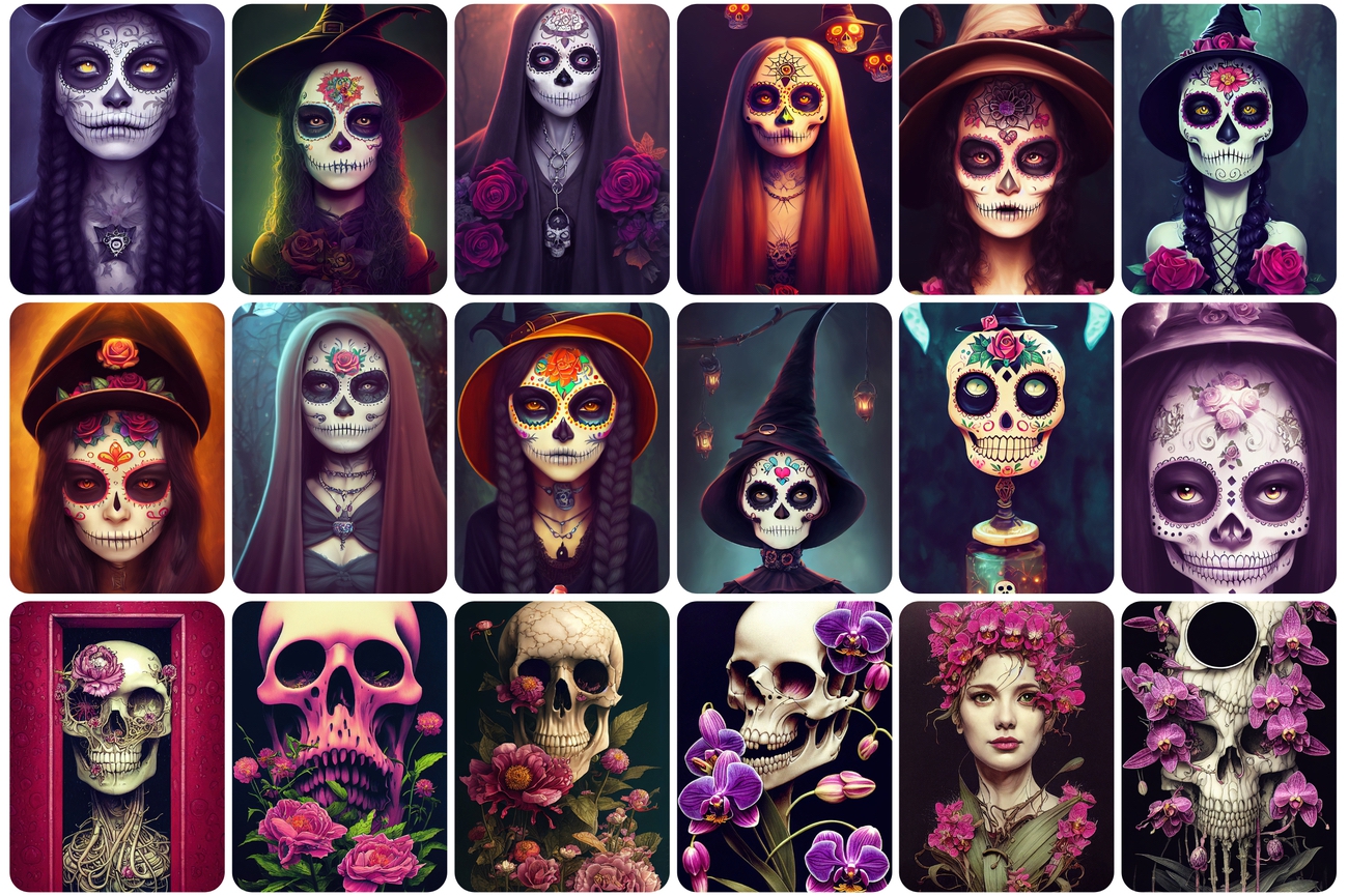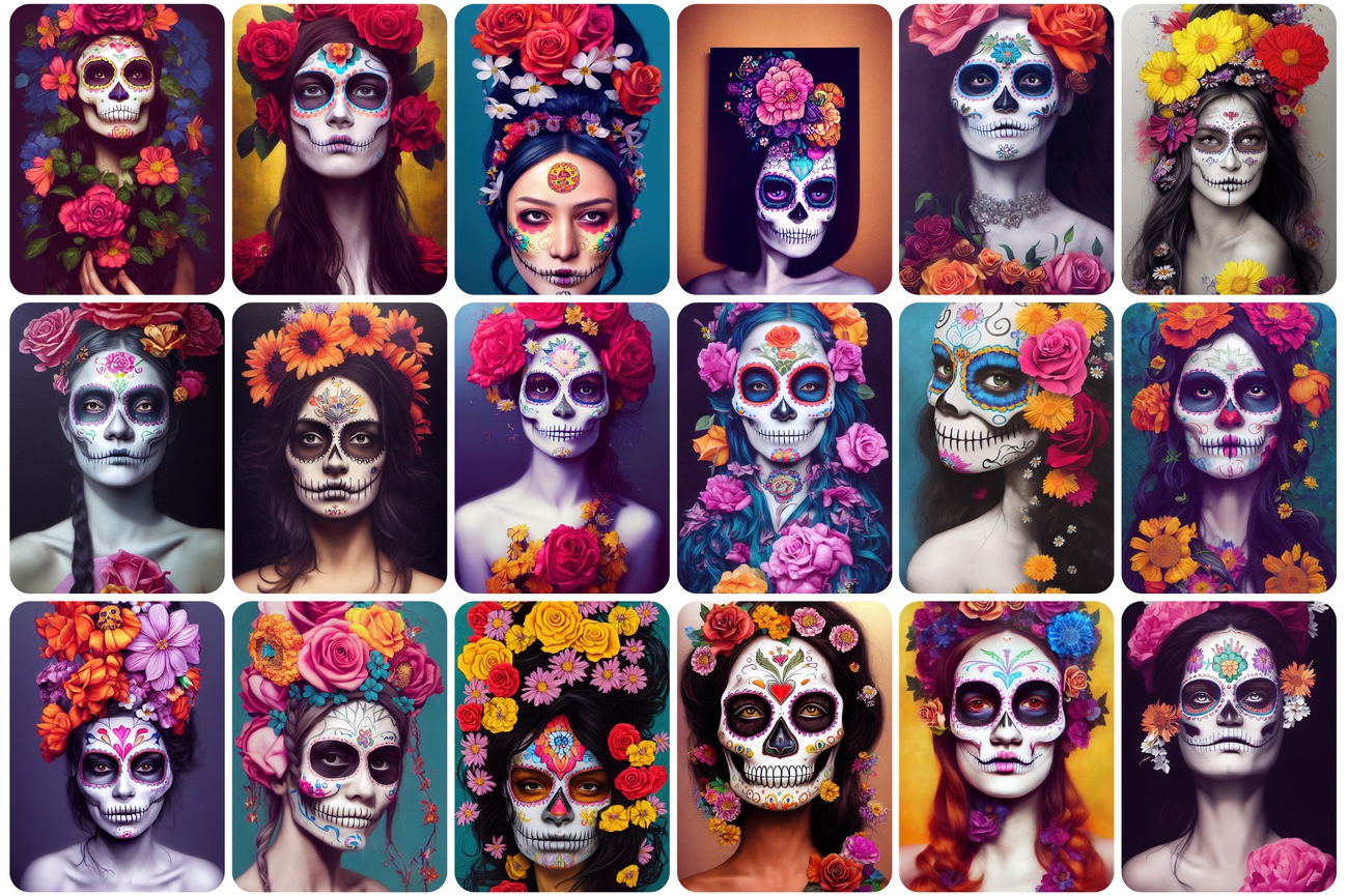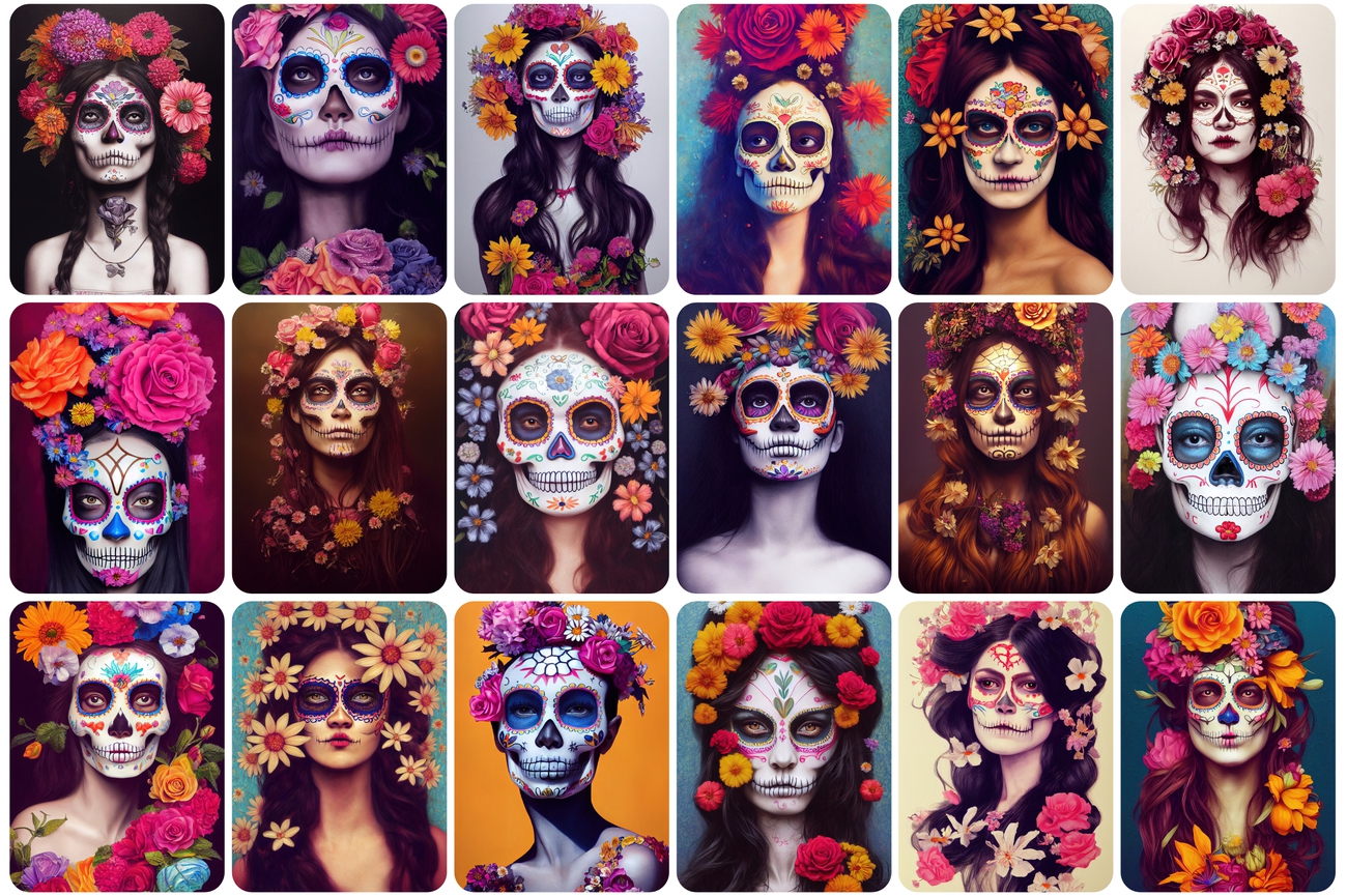 You will be able to download 160+ Pictures of Sugar Skulls. This bundle will help you to create the best posters for your walls!
