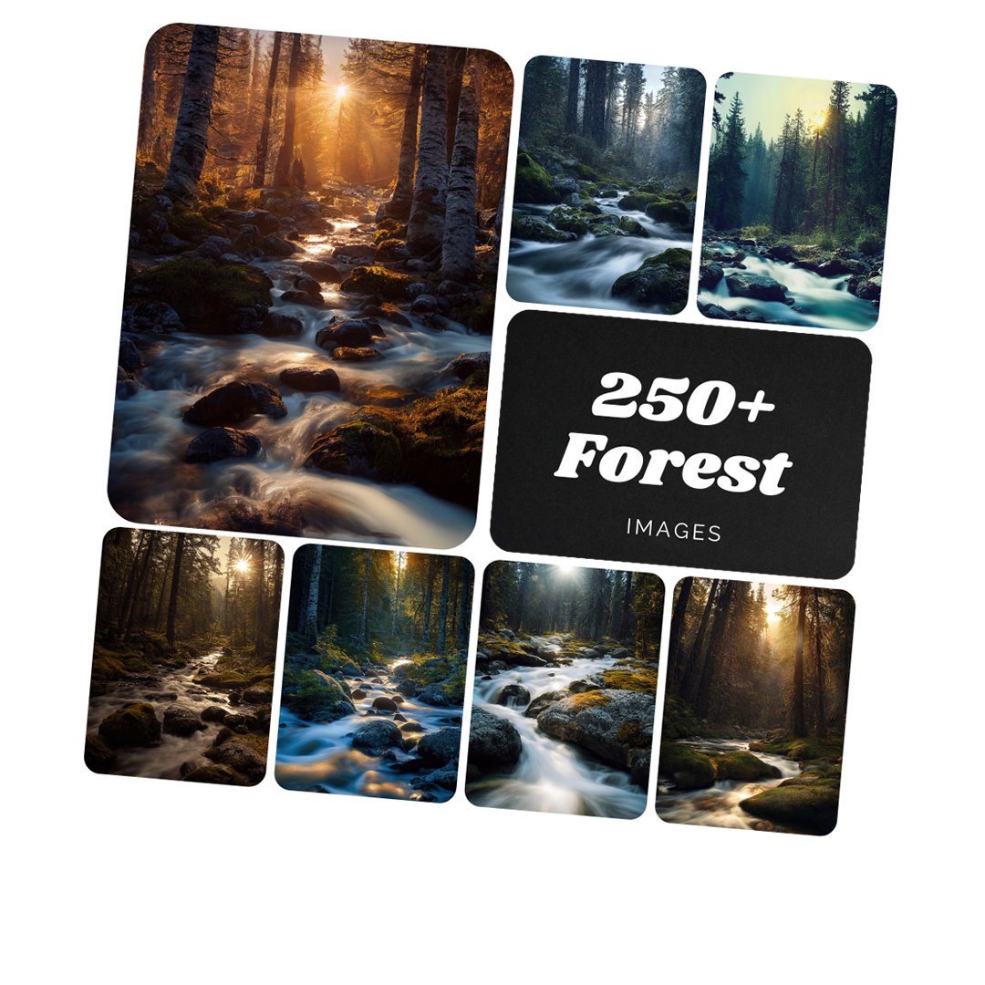 You will be able to download 255 Images with Forest and Nature. This bundle will help you to create the best posters for your walls!