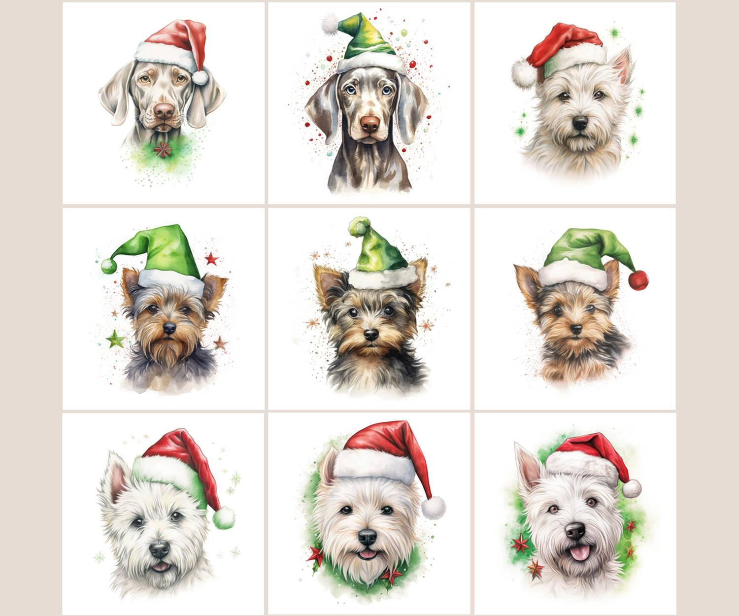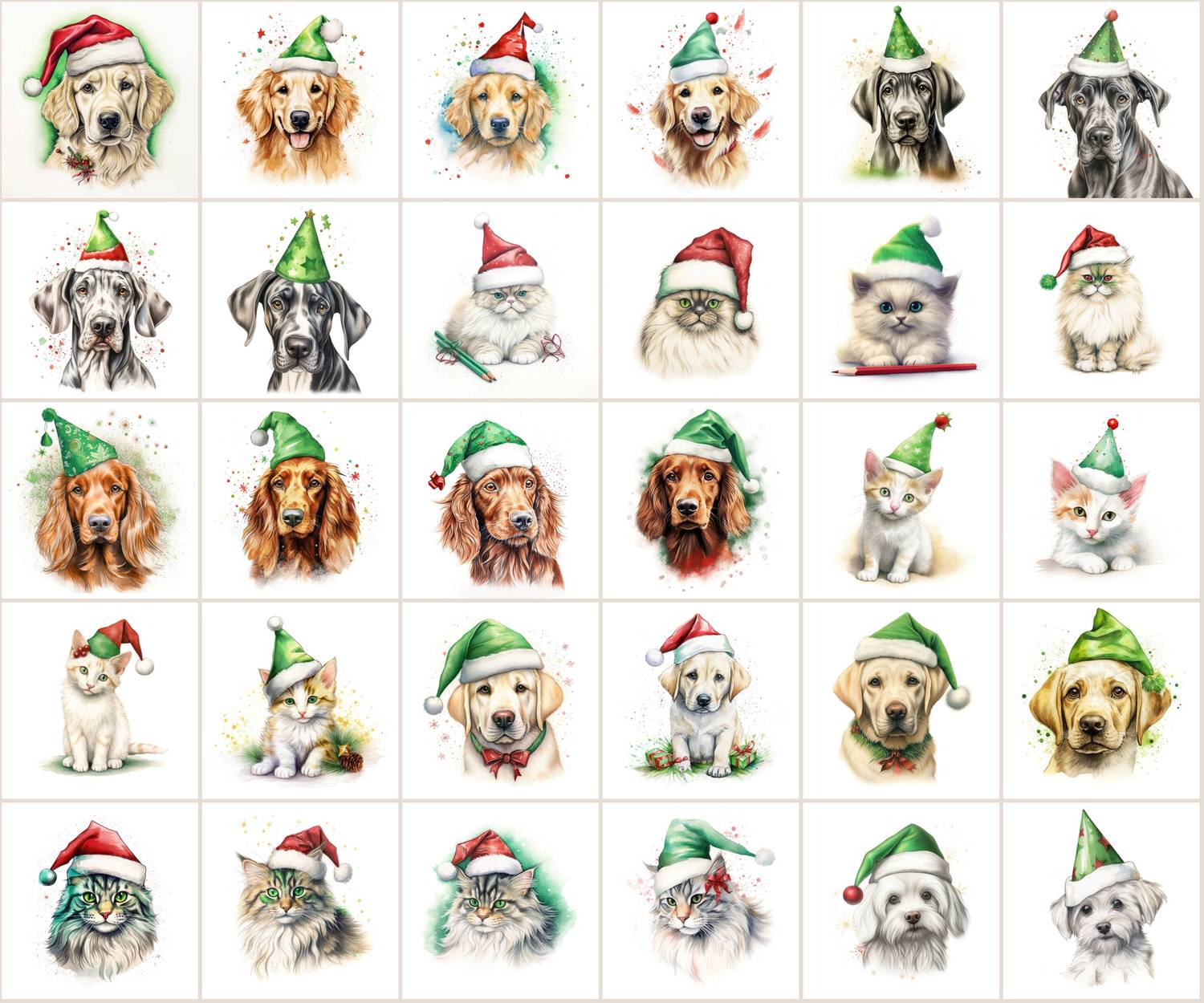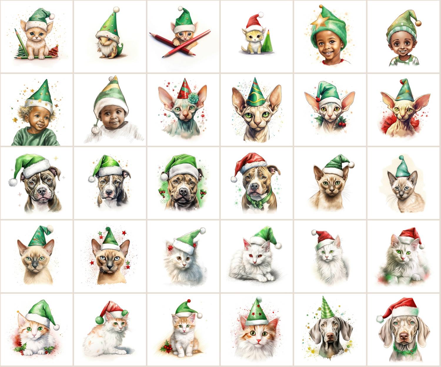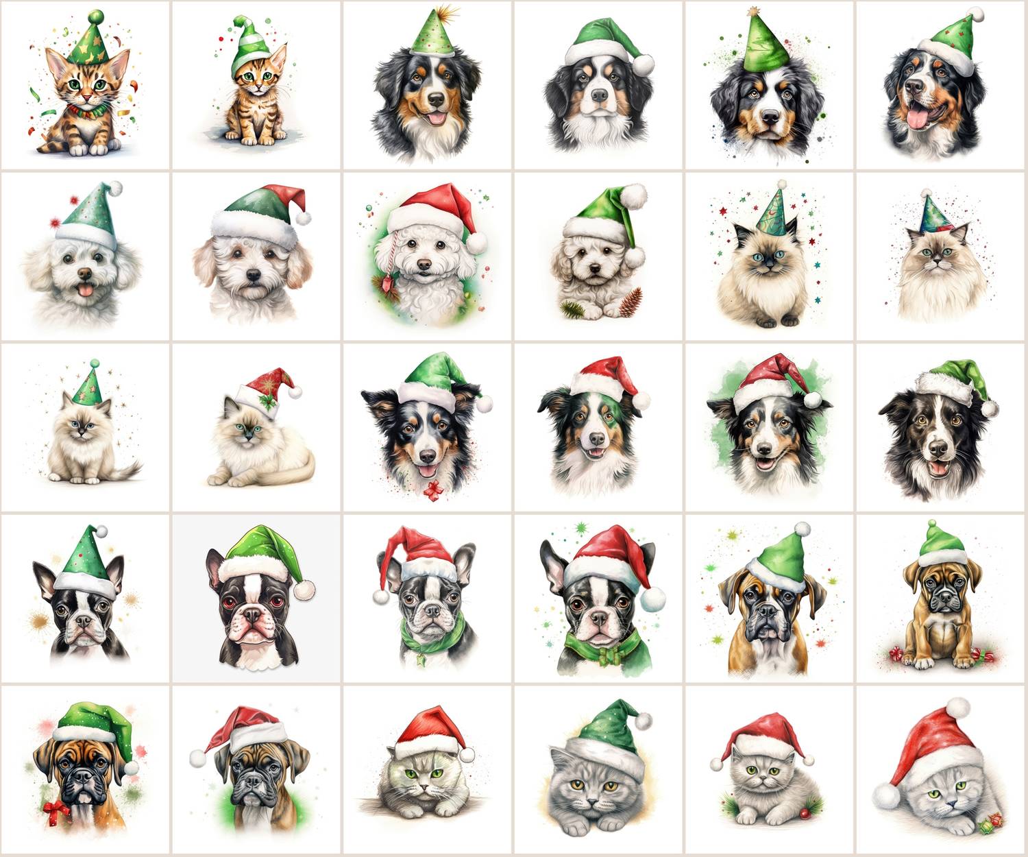 You will be able to get the 280 Animal Santa Hat PNGs: Dogs, Cats, Christmas Clipart, Commercial License Included.
