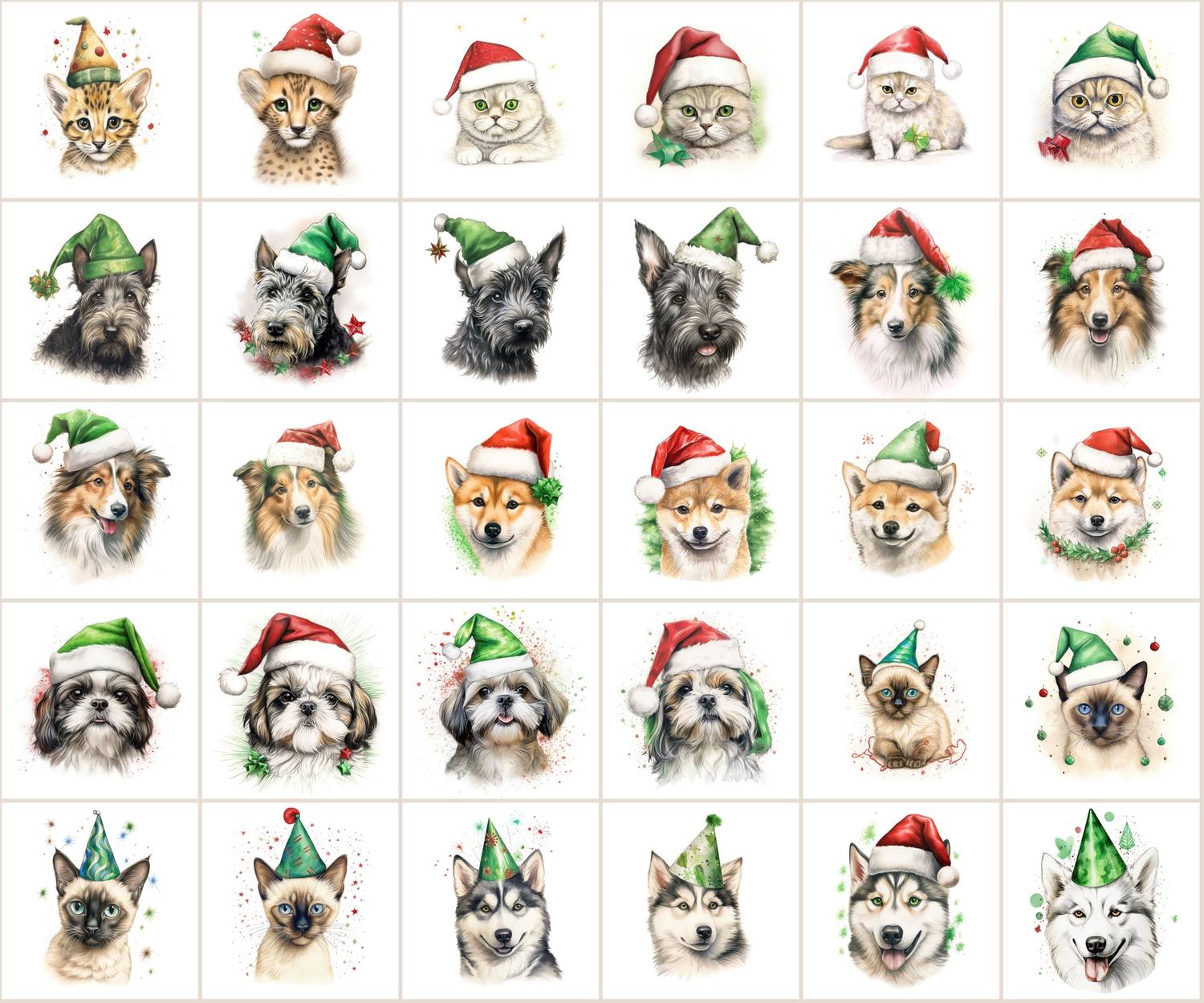 Get ready for the holiday season with our vibrant collection of 280 Animal Santa Hat PNGs! This set includes adorable dogs like Labrador Retriever, German Shepherd, and Beagle, as well as cute cats like Maine Coon, Siamese, and Persian—all wearing festive Santa hats. Perfect for Christmas cards, holiday decor, and commercial projects.