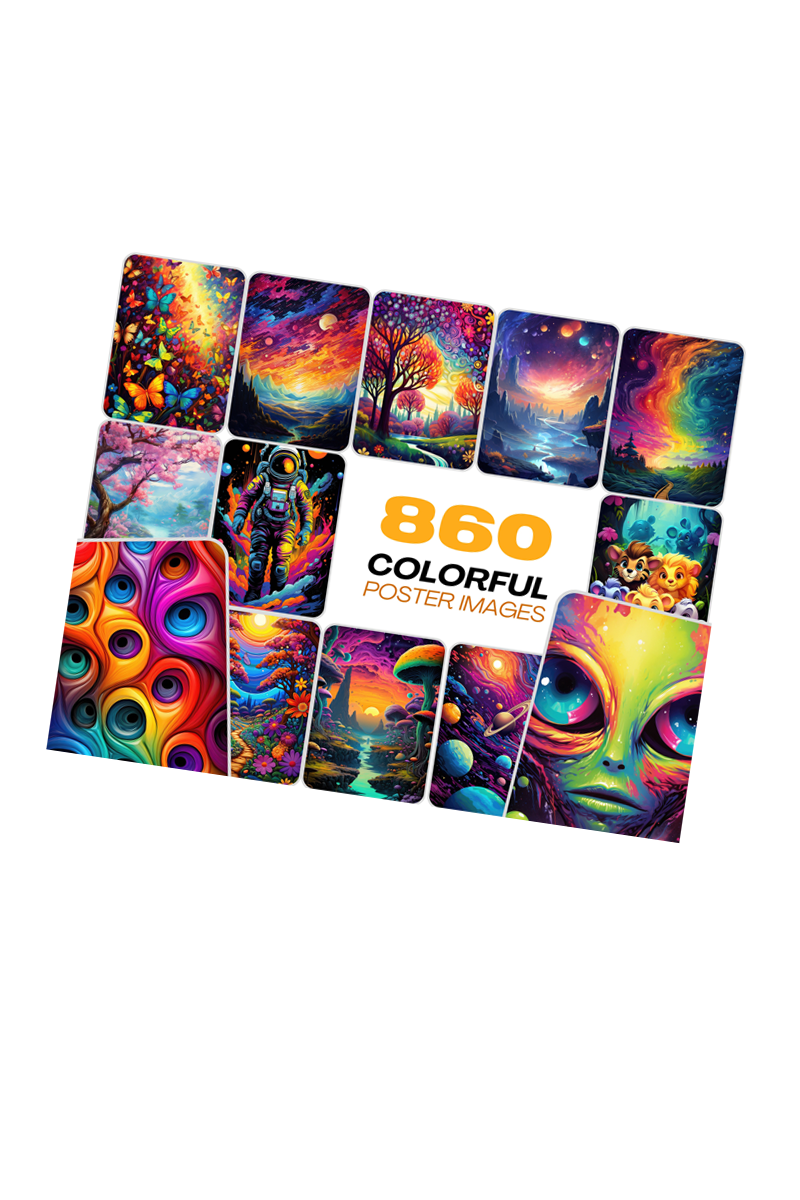 You will be able to get the 860+ Colorful PNG Poster Images: Astral, Celestial, Blossoms, Alien Worlds, Space Exploration, and More - High Resolution, Commercial License Included.