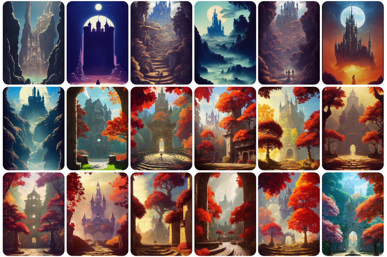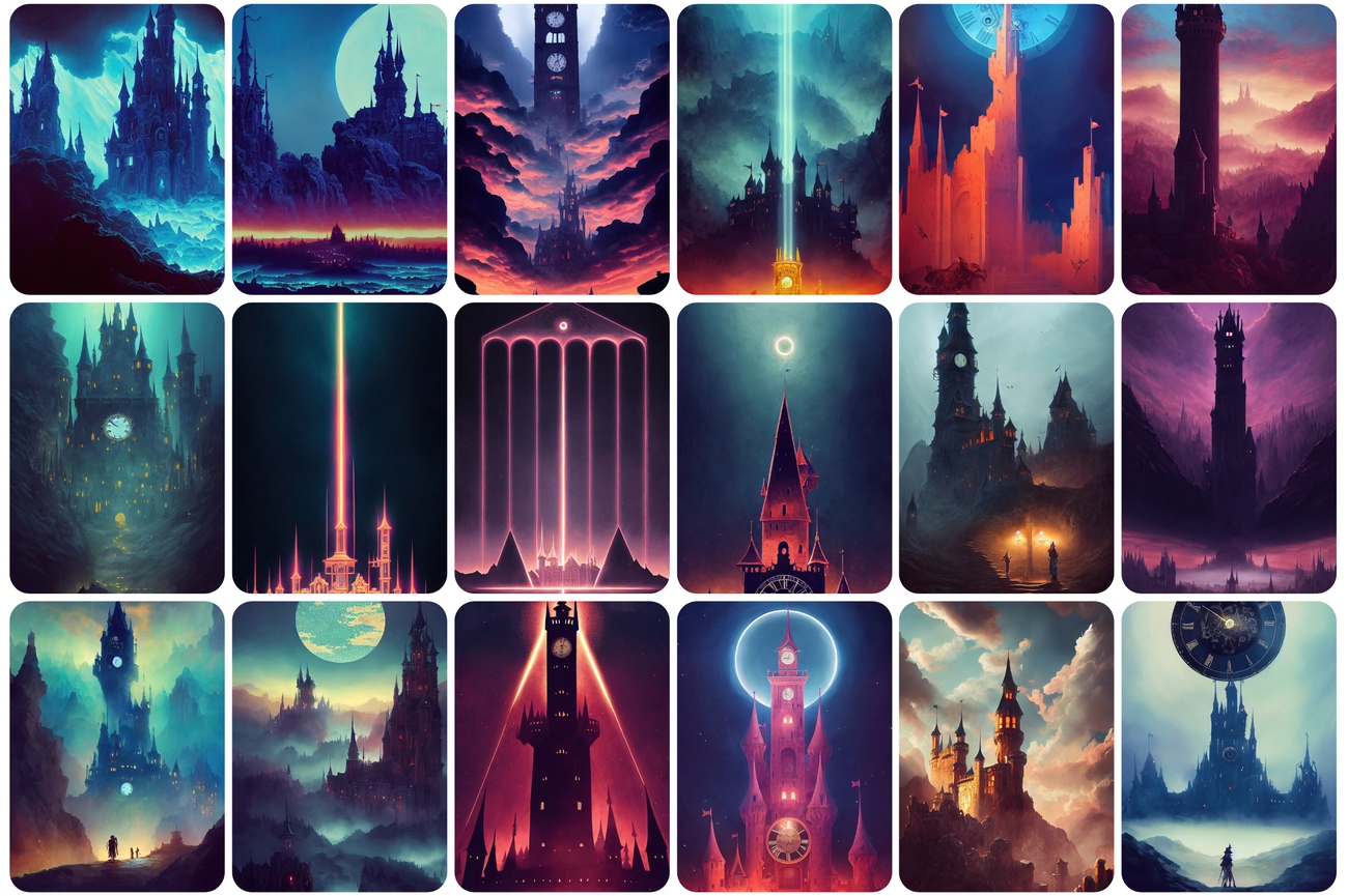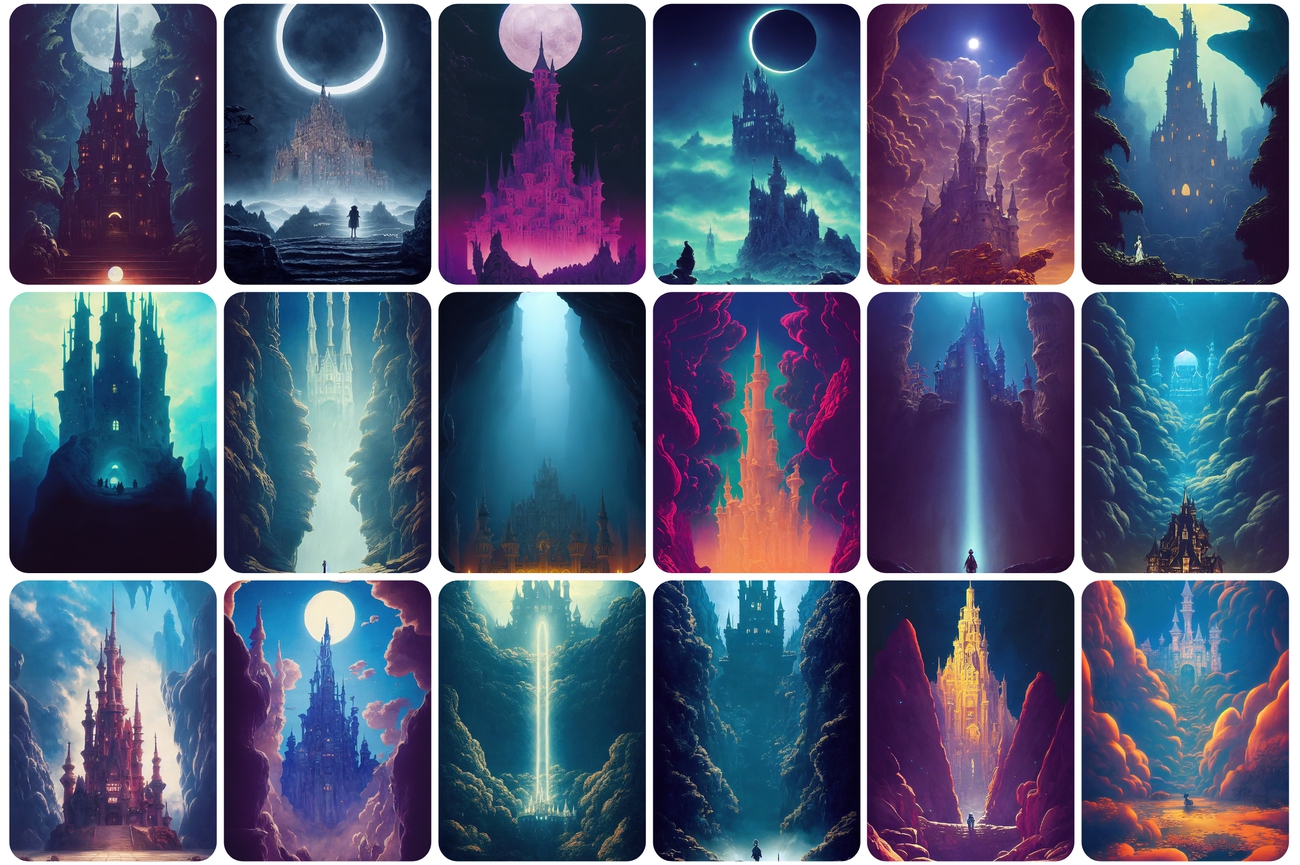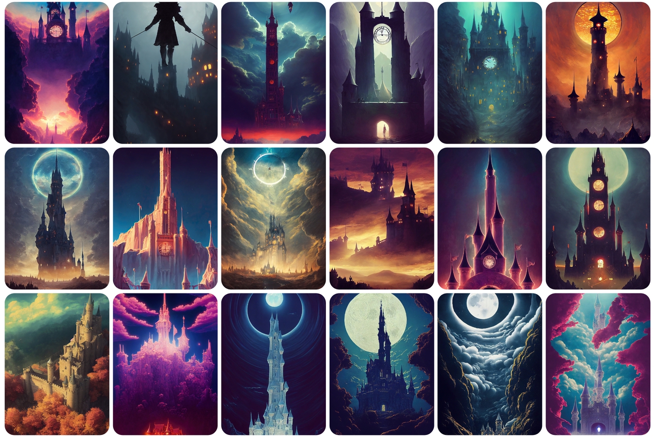 You will be able to download 130 UNIQUE castle images. You will get castles and ruins in dreamy surrealism with scenic background mountain landscapes.