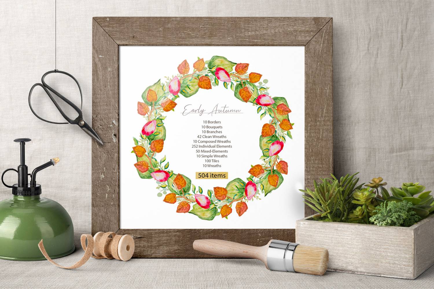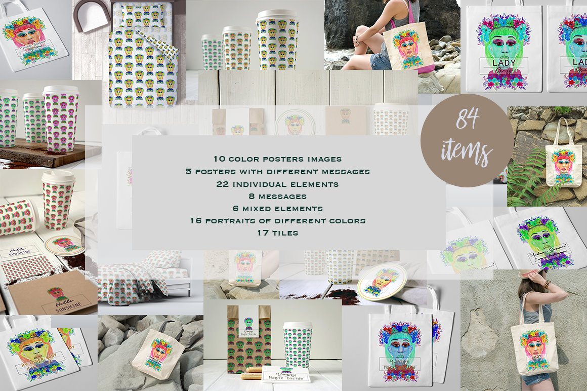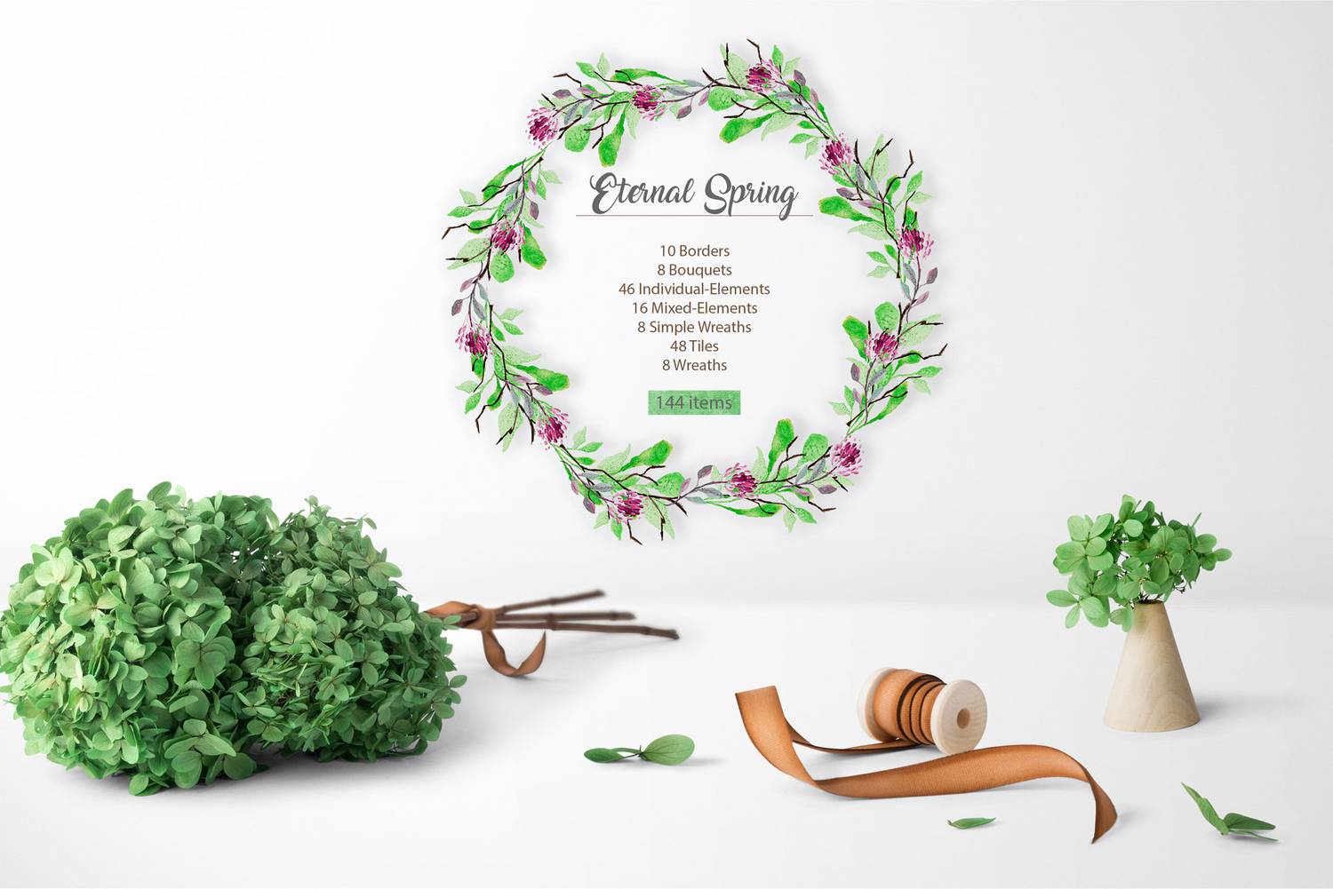 In this set you will find a lot of floral compositions, wreaths, bouquets, patterns ( not seamless ), watercolor and tiles.