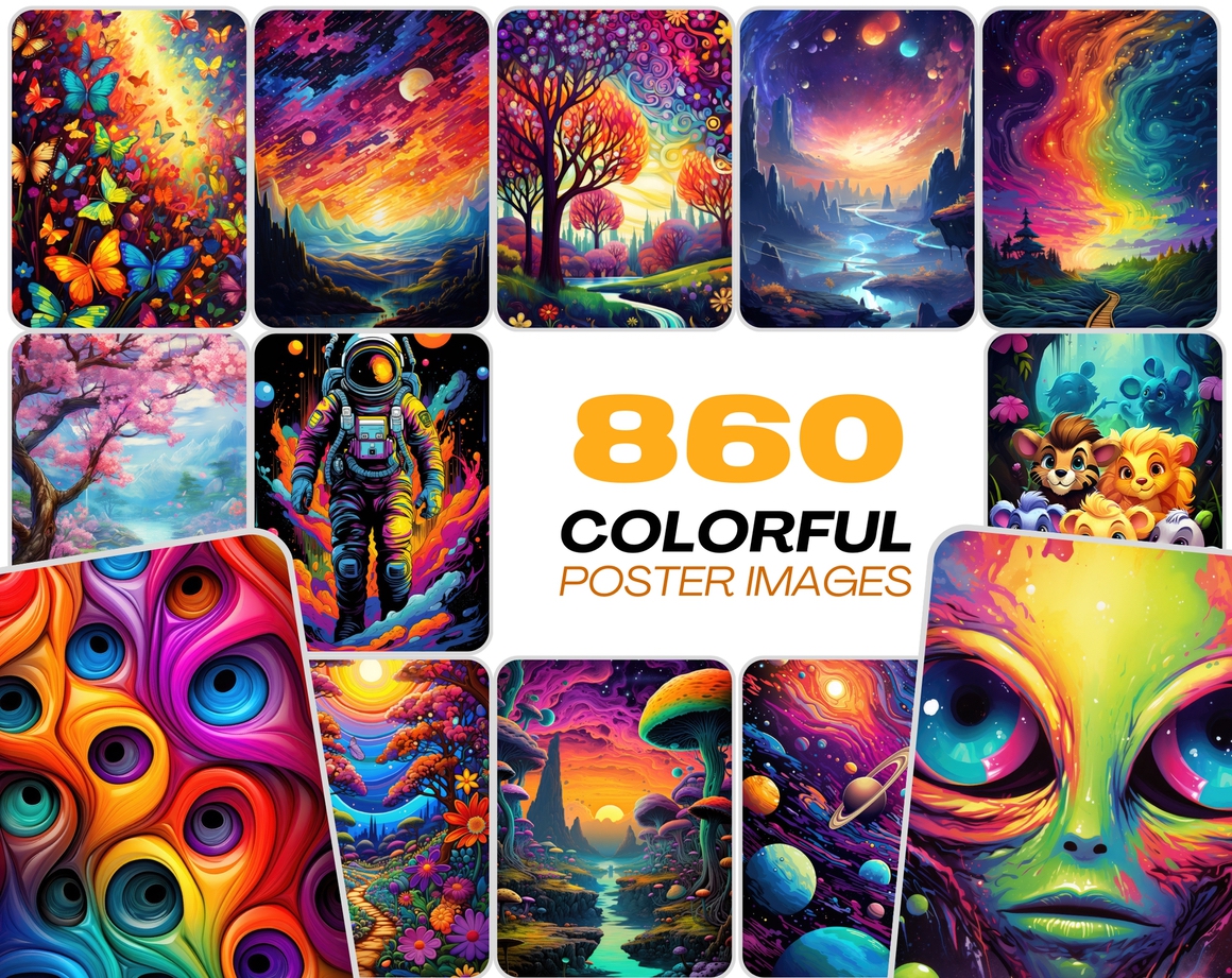 Immerse yourself in a visually stunning collection of 860+ colorful PNG poster images featuring astral adventures, celestial beauty, space exploration, alien worlds, blooming gardens, and so much more.