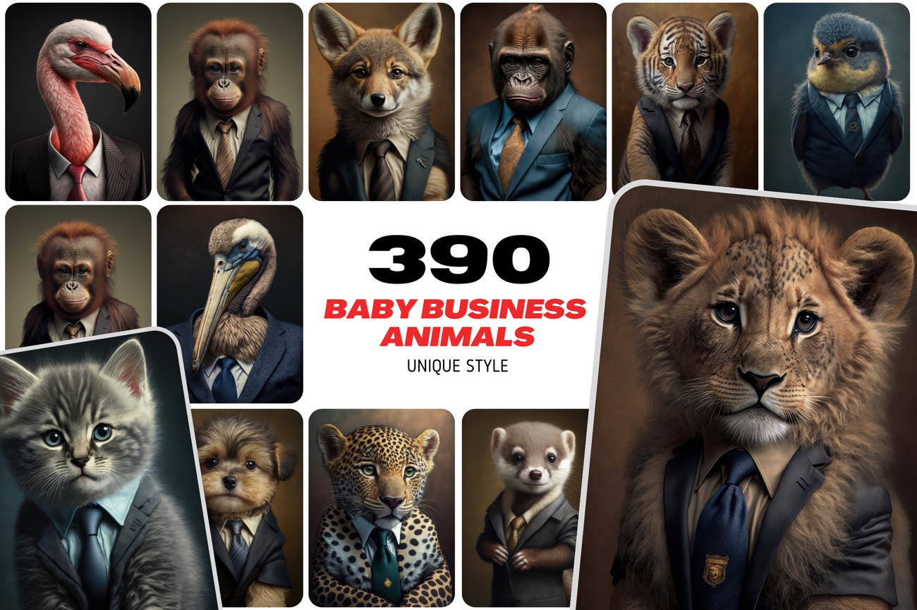 Are you tired of the same old clipart and graphics? Looking for something fresh, fun, and memorable to add to your projects? Look no further than our exclusive bundle of 390 adorable baby animal illustrations in business suits!