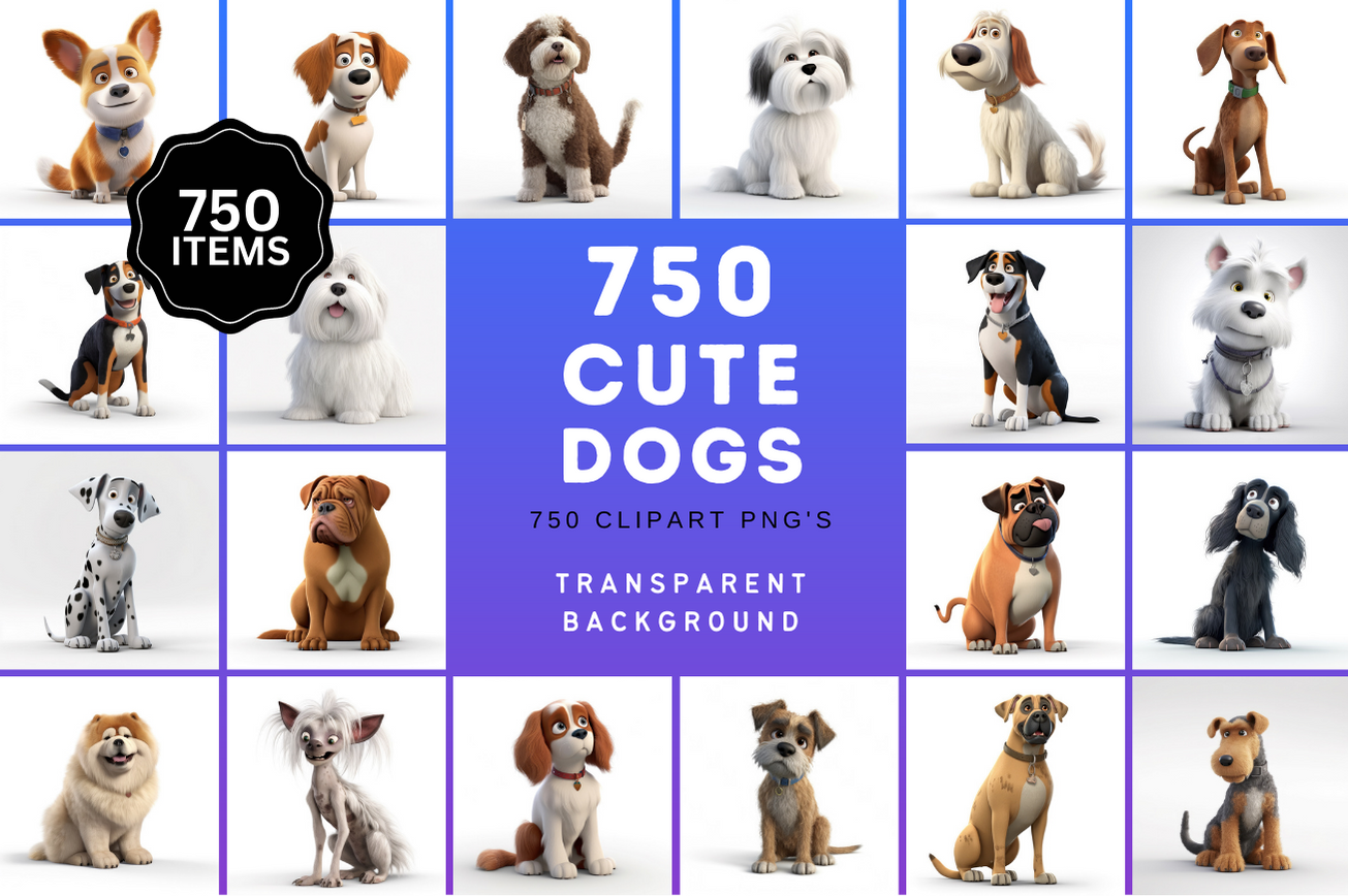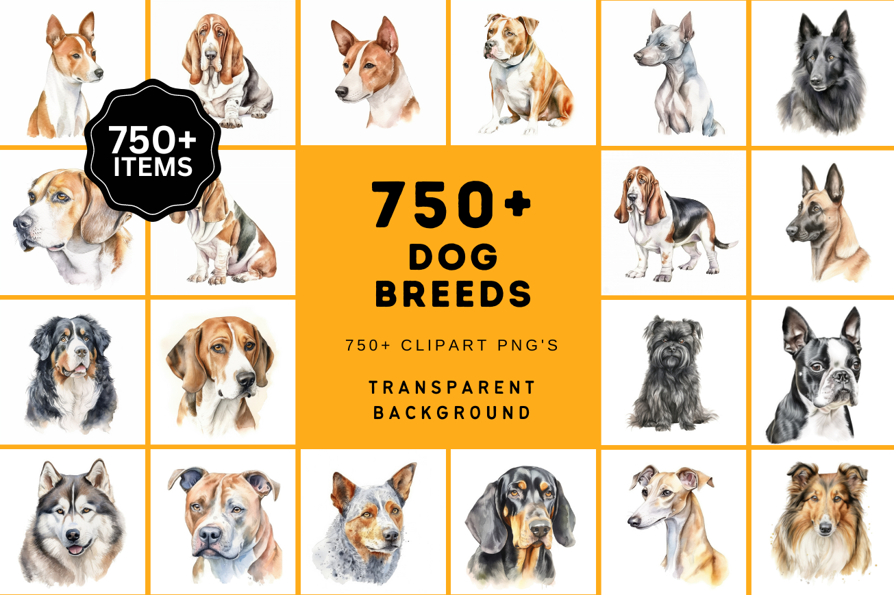 Ultimate Dog Breed Bundle, featuring 750 transparent images of a wide variety of dog breeds! This versatile and unique collection is perfect for all dog lovers, crafters, digital artists, and designers.