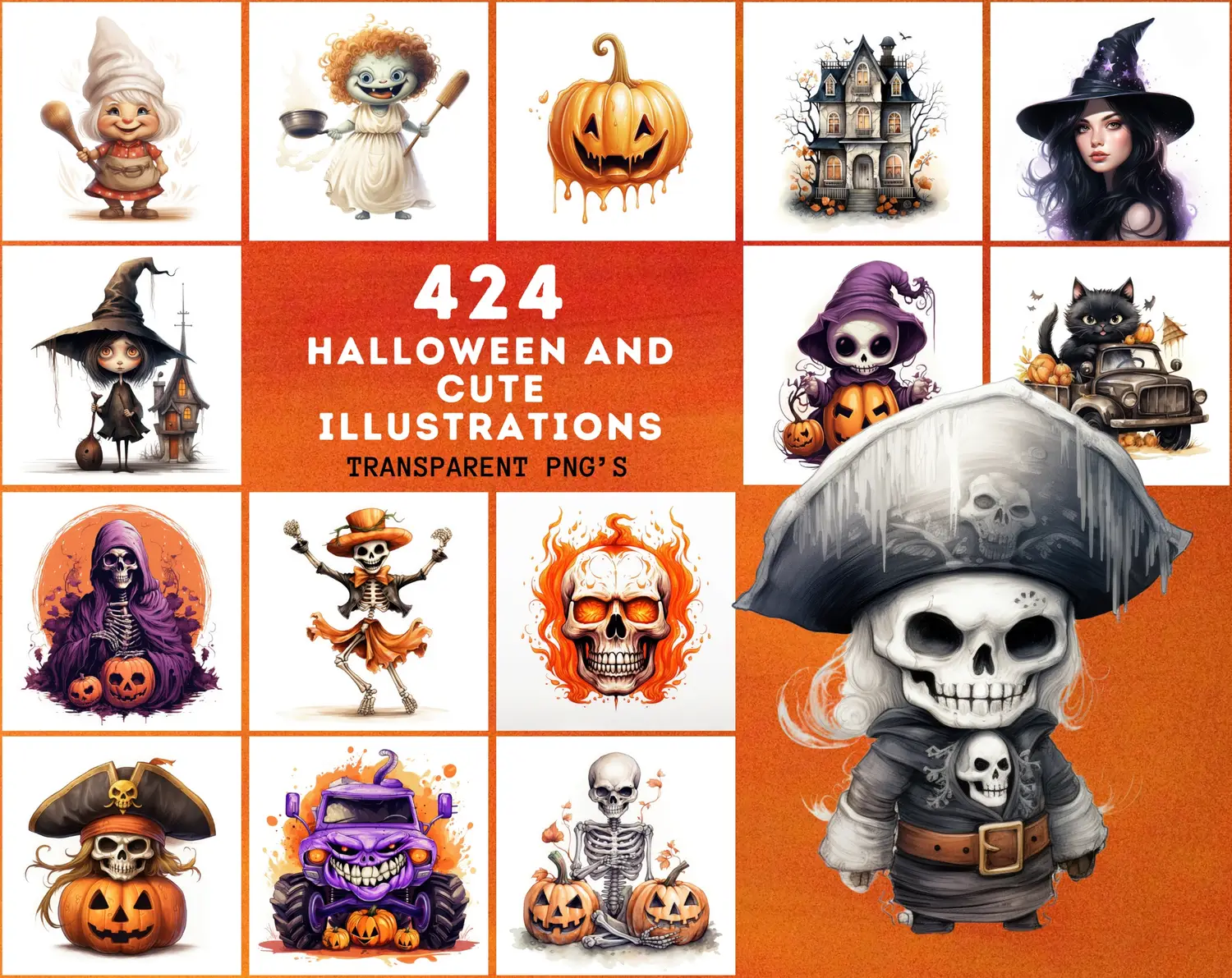 Elevate your creativity with our all-inclusive pack featuring 424 distinctive Halloween and charming illustrations. Choose from both transparent and white backgrounds enhanced by soft shadows.