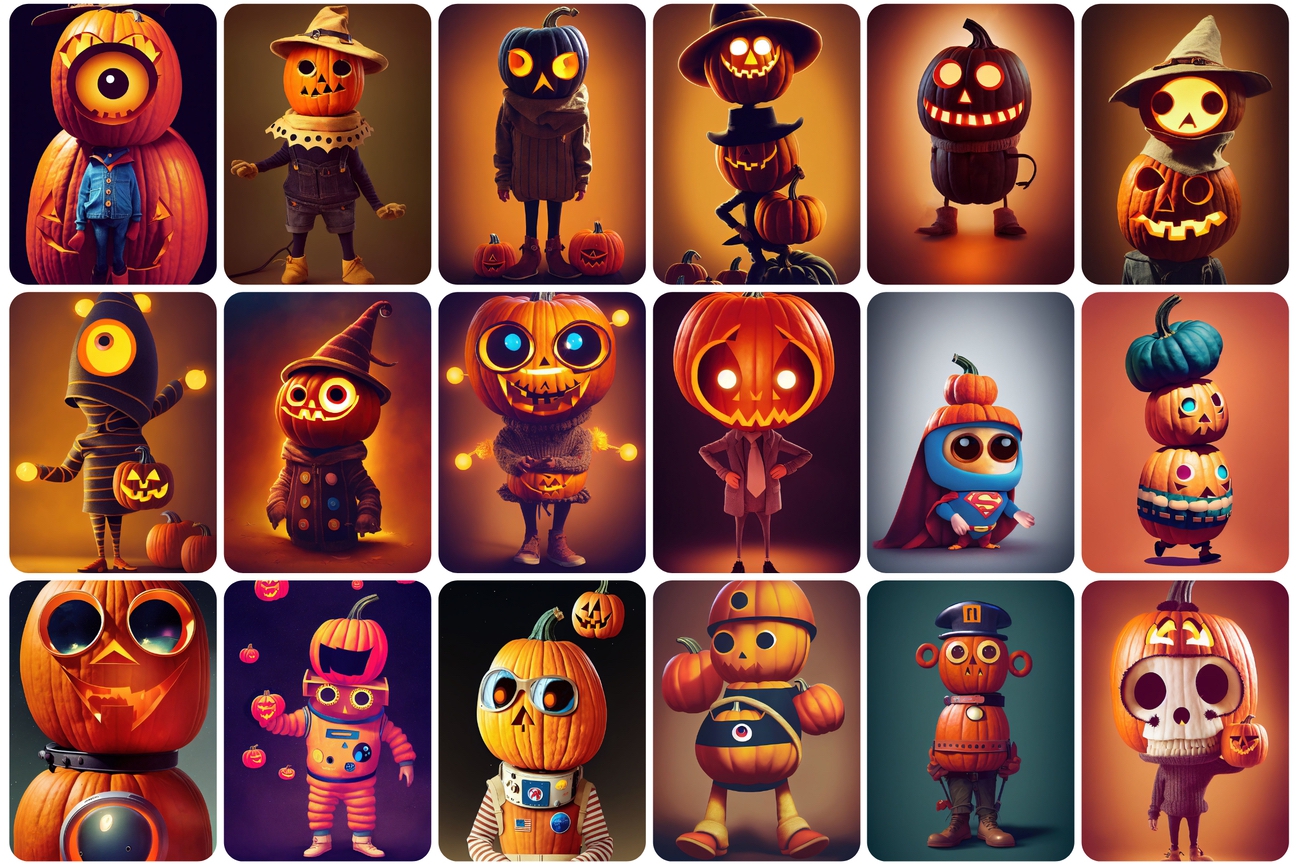 These Rare halloween graphic bundle - Anthropomorphic Halloween Graphics stock images are great for use as digital papers, backgrounds, cover arts, or printed on different objects.